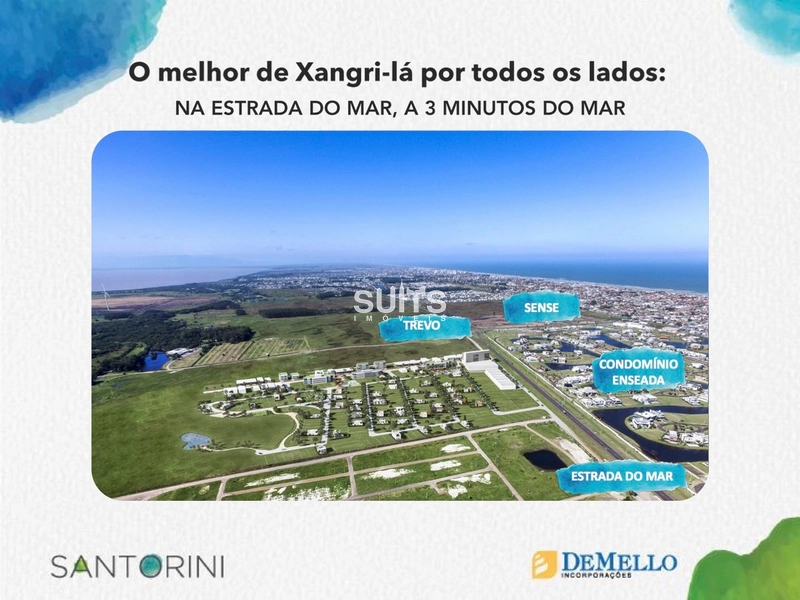 SUITS IMÓVEIS um jeito inovador de atender seus clientes, atendimento personalizado, e as maiores novidades de lançamento do mercado imobiliário. Conheça o SANTORINI - O bairro planejado SANTORINI foi feito para você que quer viver em um lugar com infraestrutura completa, junto à natureza. Com uma área de preservação permanente e um projeto paisagístico diferenciado, o bairro reúne lazer, praticidade e contemplação no mesmo lugar. É para você aproveitar a sua liberdade sem precisar sair de casa. TERRENOS RESIDENCIAIS Chegar em casa e encontrar o conforto e a segurança que você sempre sonhou. Sair dela e aproveitar uma infraestrutura de lazer e conveniência bem perto de você. O primeiro bairro planejado do Litoral Norte chegou para transformar o seu estilo de vida e oferecer o melhor lugar para você viver seus melhores dias. TERRENOS COMERCIAIS Deixar o carro na garagem e ir para o trabalho a pé, ter lojas, conveniências e serviços ao lado de casa e ainda encontrar os amigos pelo caminho. Viver no Santorini é ter muita qualidade de vida o ano inteiro. Pensando em comprar ou vender o seu imóvel? Fale com um especialista ligue para SUITS IMÓVEIS (51) 3416-9899, ou pelo WhatsApp plantão 24 horas (51) 99914-3000.